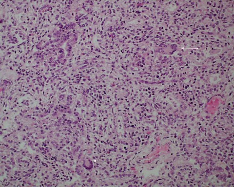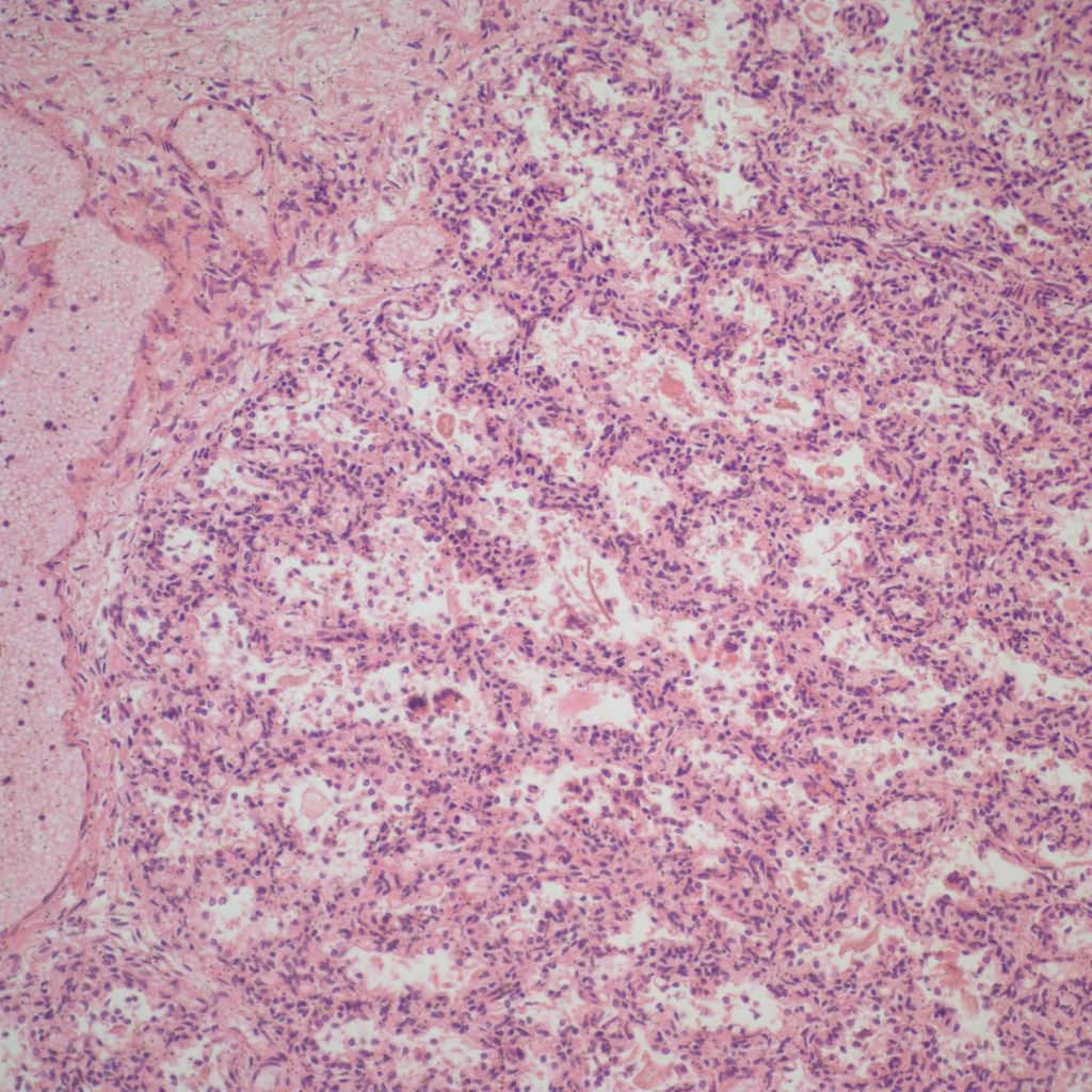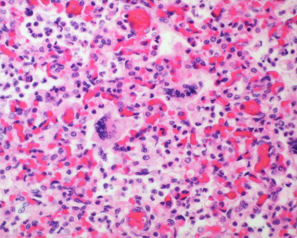 Giant cell pneumonitis and interstitial pneumonitis can also be seen in stillbirth, but these features do not indicate a specific etiology19. Fungal, viral and protozoic should be excluded (Fig 14a-c).