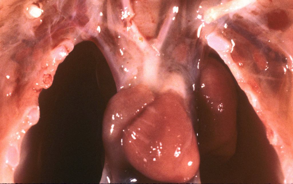 Pulmonary hypoplasia: Pulmonary hypoplasia may be apparent on opening the chest because the small lungs are obscured by the heart (Fig 1a,b).
