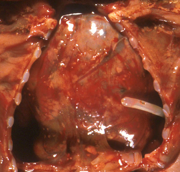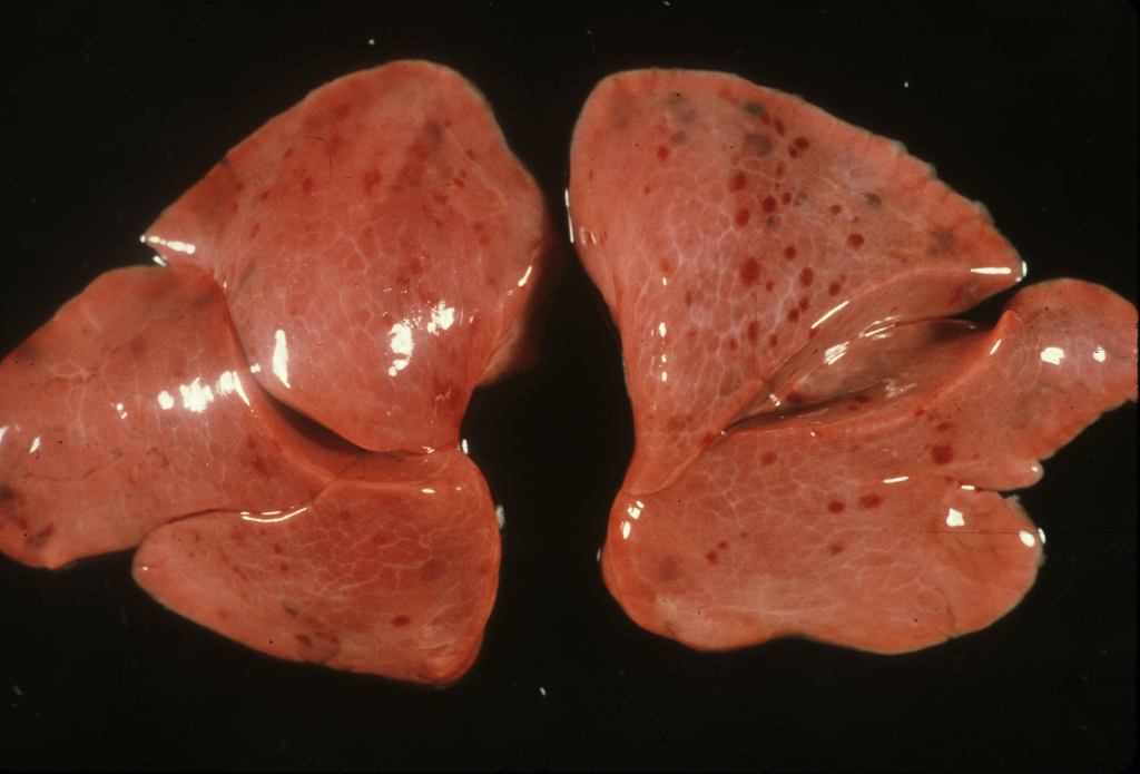 Pleura: As with other intrathoracic organs, the pleural surface can confirm the petechial hemorrhages seen grossly (Fig 10).