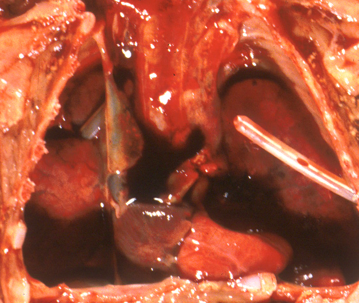 Pulmonary hypoplasia: Pulmonary hypoplasia may be apparent on opening the chest because the small lungs are obscured by the heart (Fig 1a,b).