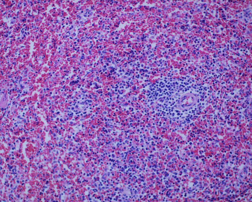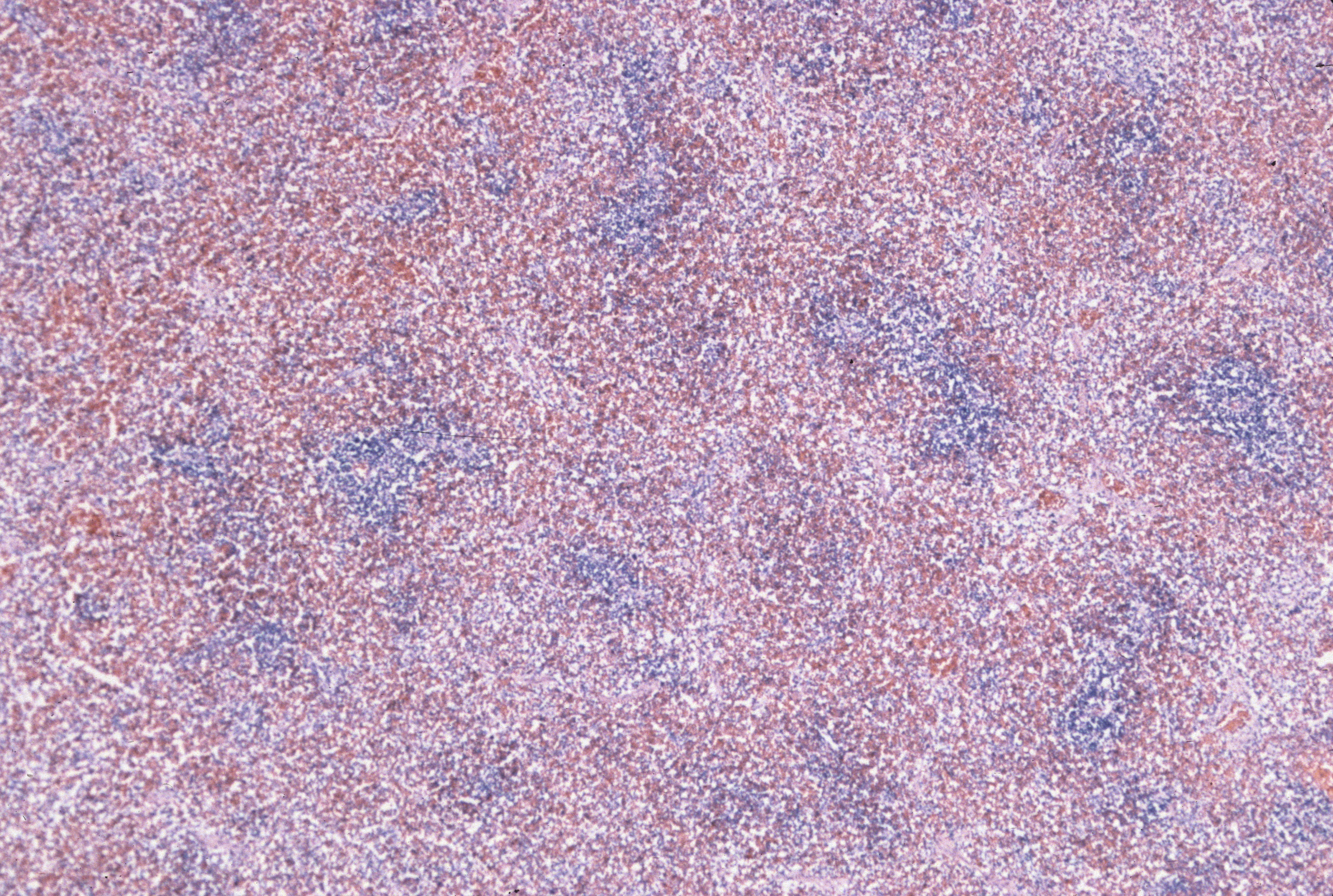 Red pulp: The sinuses may be congested, and conversely in fetal anemia, they may be notably empty. (Fig 6a, b).